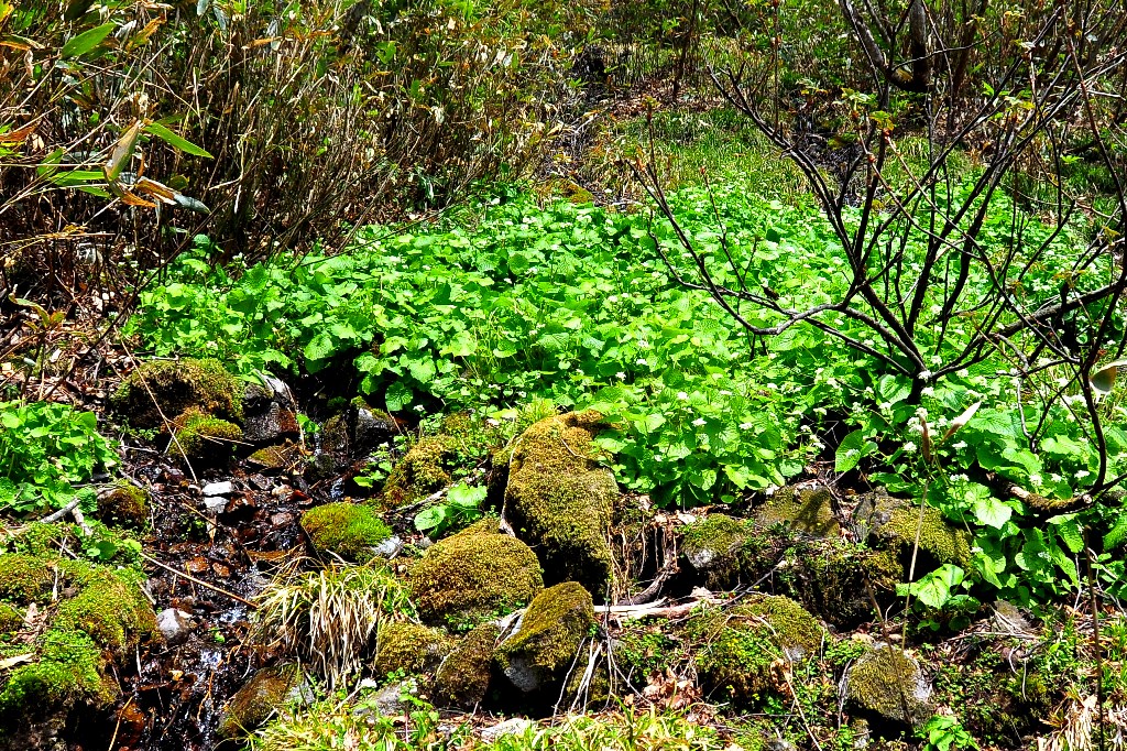 清楚な小沢には自生のワサビ田が・・・ここは国立公園・・・採取は禁止ですよね・・・