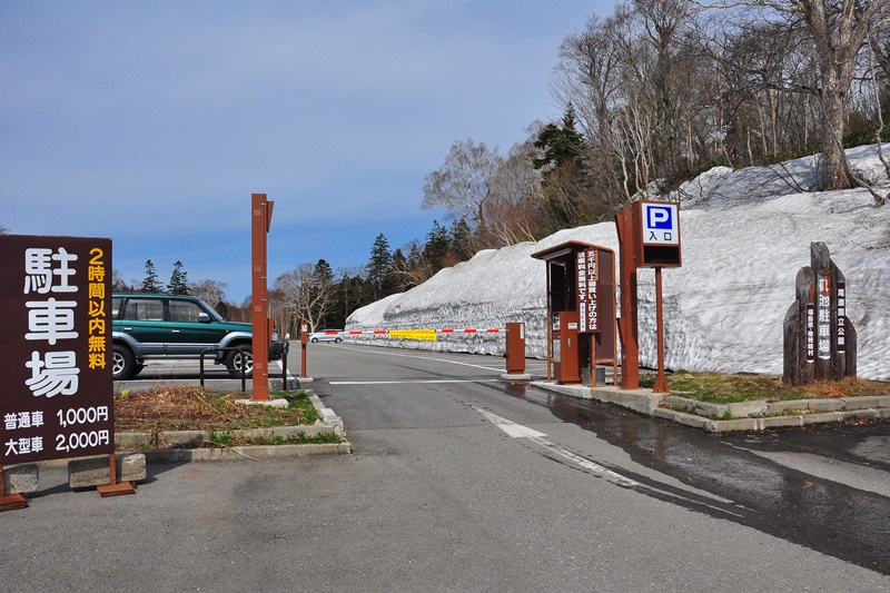 大きな雪の壁が残る駐車場は閑散として、尾瀬山開きは終わったものの残雪も多く未だに登山者は少ないようです。