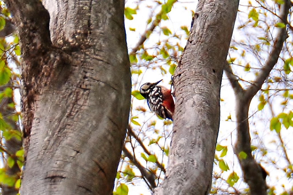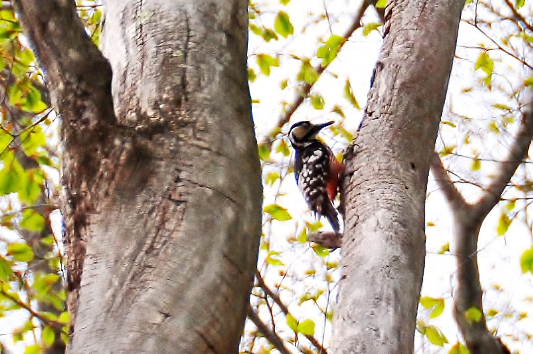 辺りを見渡せば遥かな高みに・・・オオアカゲラ・・・の姿が。
