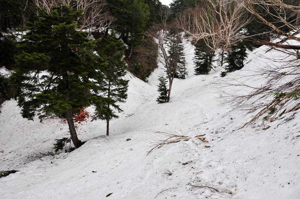 残雪への踏み抜きと滑落には用心して歩いていきましょうか。