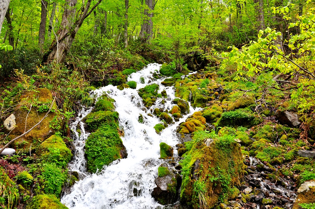 美しい新緑・・・心も体も染まってしまい、原生林に同化していくようです。