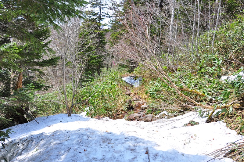 燧ケ岳の北面に位置して日差しが少なく雪解けも遅れているのでしょうか。