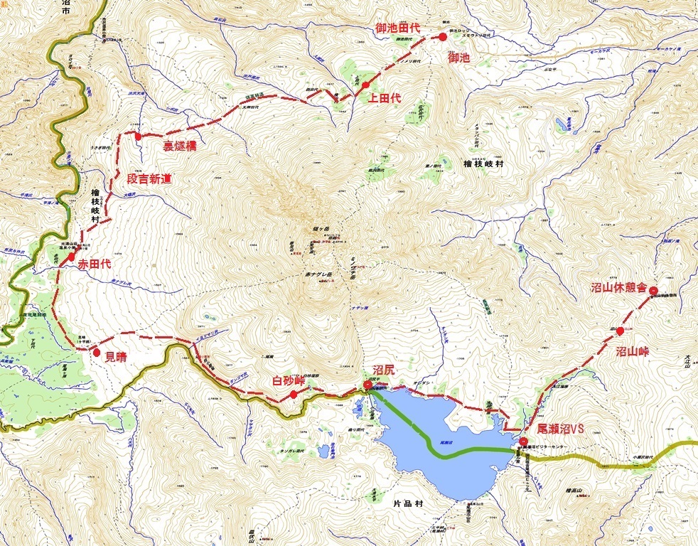 ・赤田代(7:10)〜裏燧橋(9:25〜9:35)〜上田代(10:40〜11:00)〜御池(11:30)