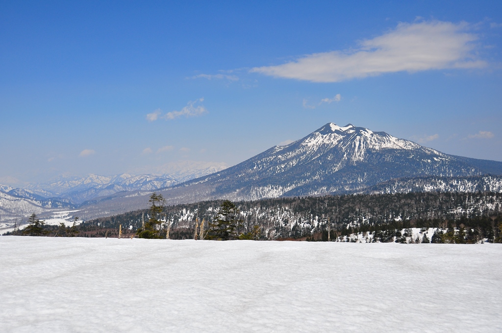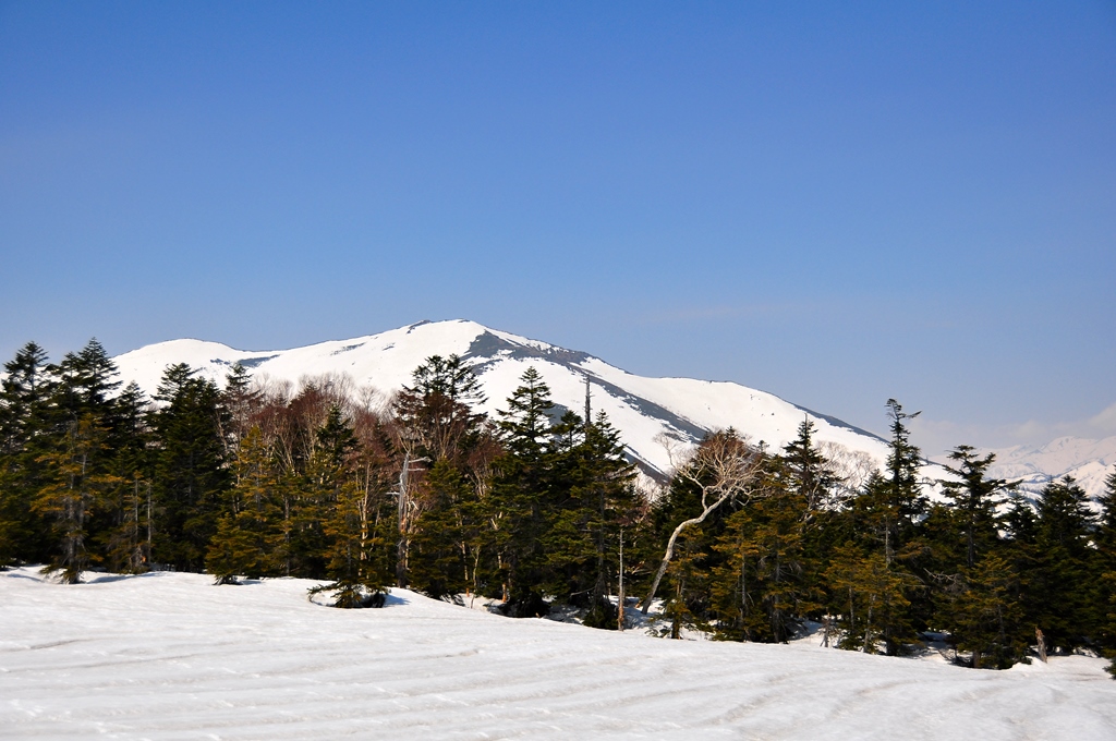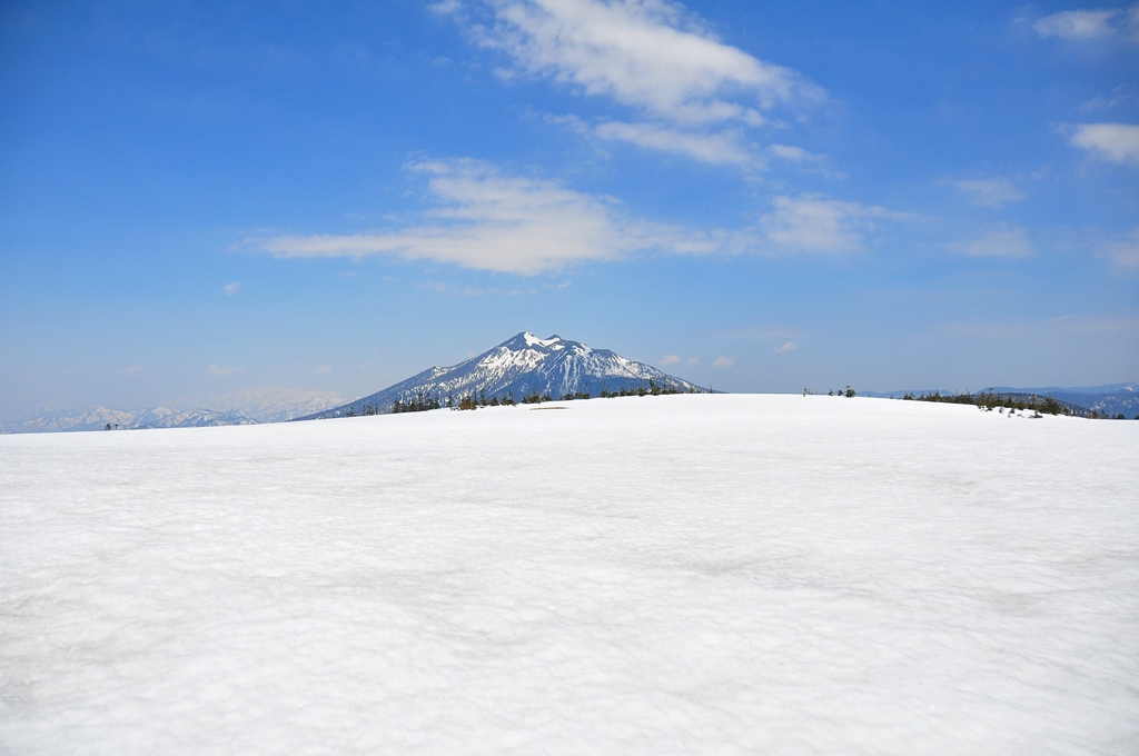 今回の最高点・・・1,968mの中原山を越えれば前方にでっかい雪原が姿を現します。