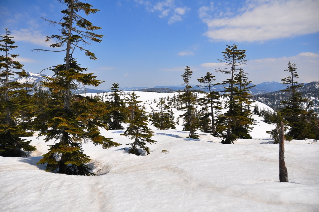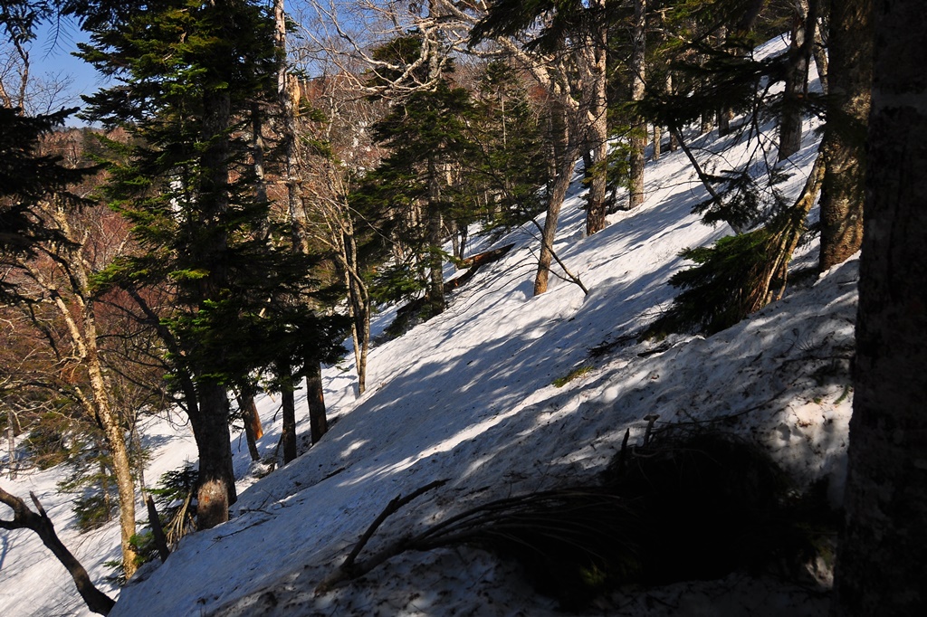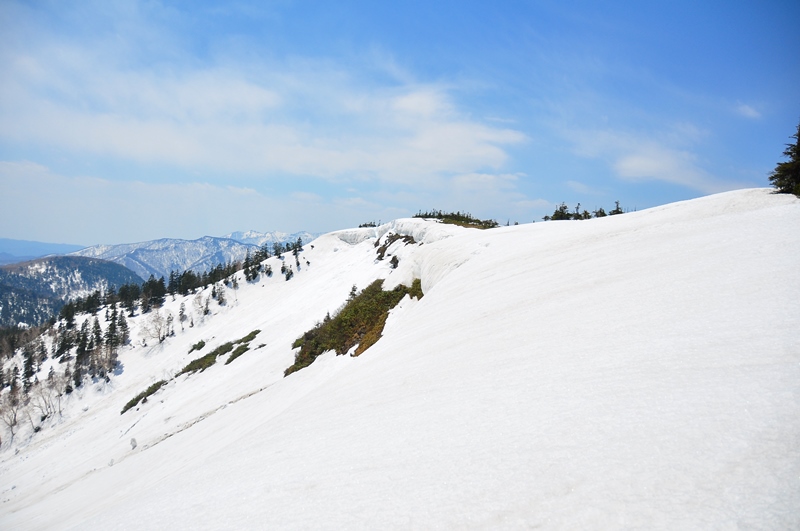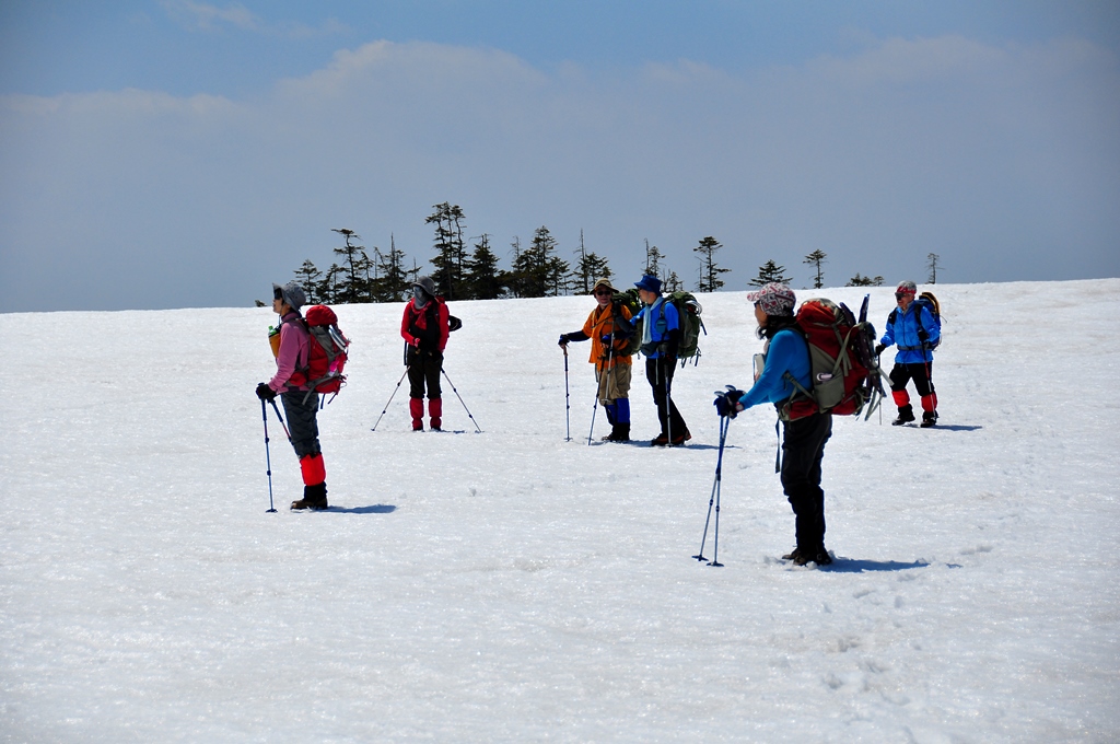 この時期の残雪は良く締まっていて、ワカンやスノーシューは結局は行程最後まで背中の荷物と化していました。