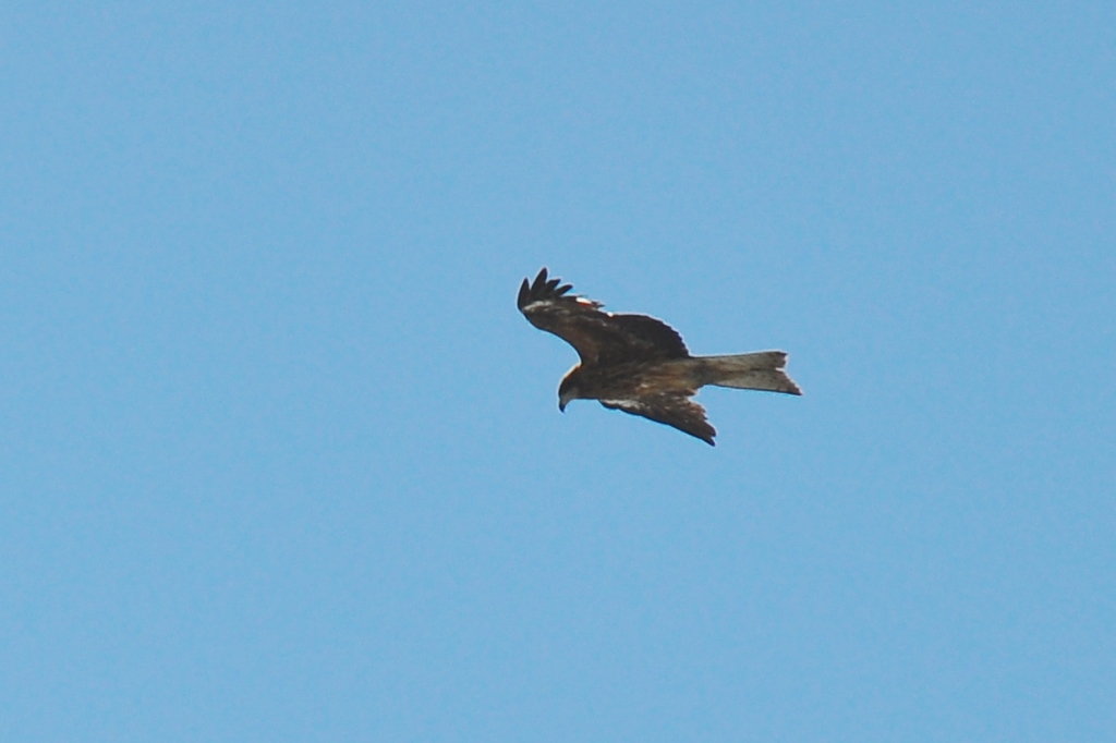 上空を旋回している猛禽はトンビさんかな。